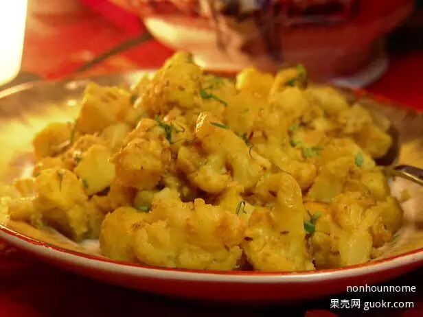 Aloo gobi在印地语里是土豆花菜的意思,这是一道制作容易且十分流行的素食菜肴,在很多印度餐馆里都找得到。