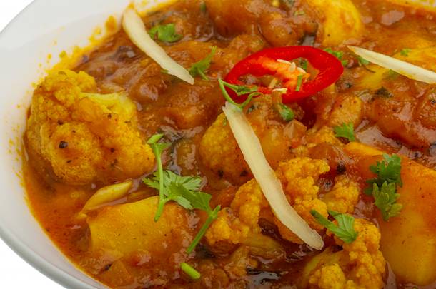 Aloo gobi在印地语里是土豆花菜的意思,这是一道制作容易且十分流行的素食菜肴,在很多印度餐馆里都找得到。